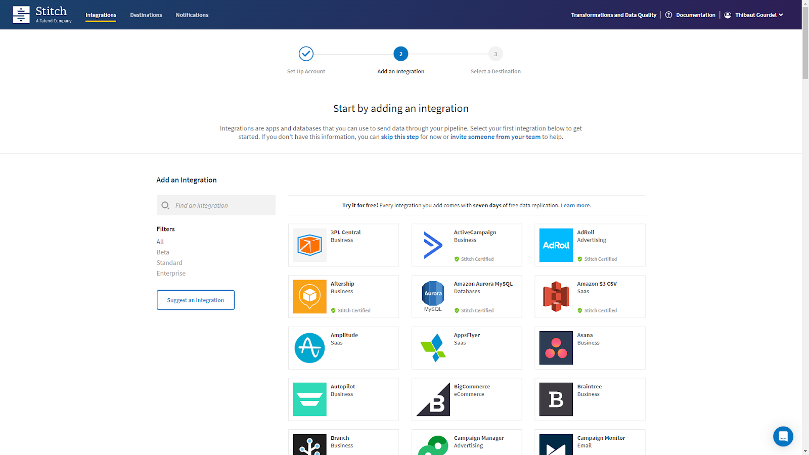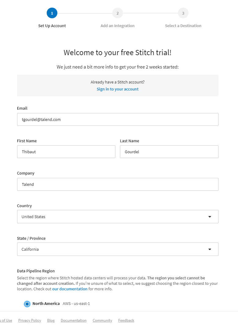 First, sign up to a Stitch free trial, click below: