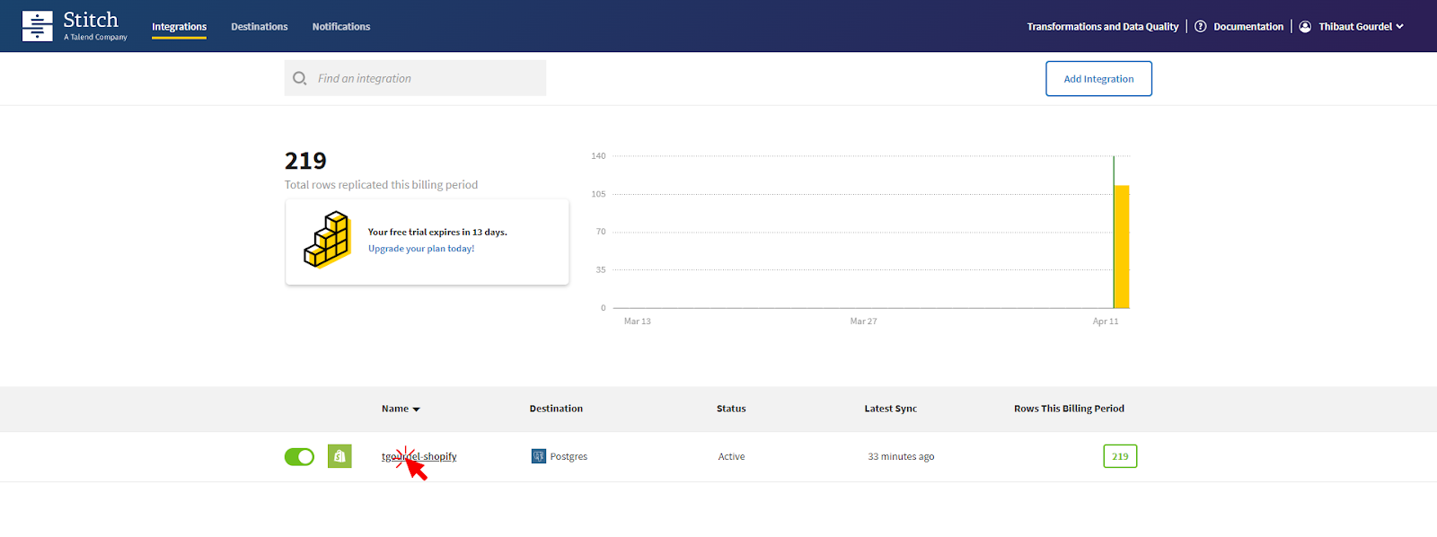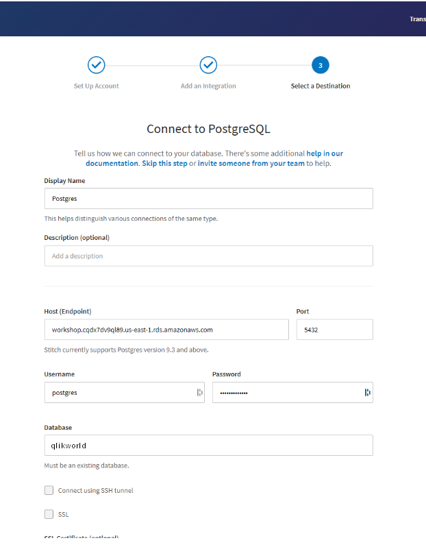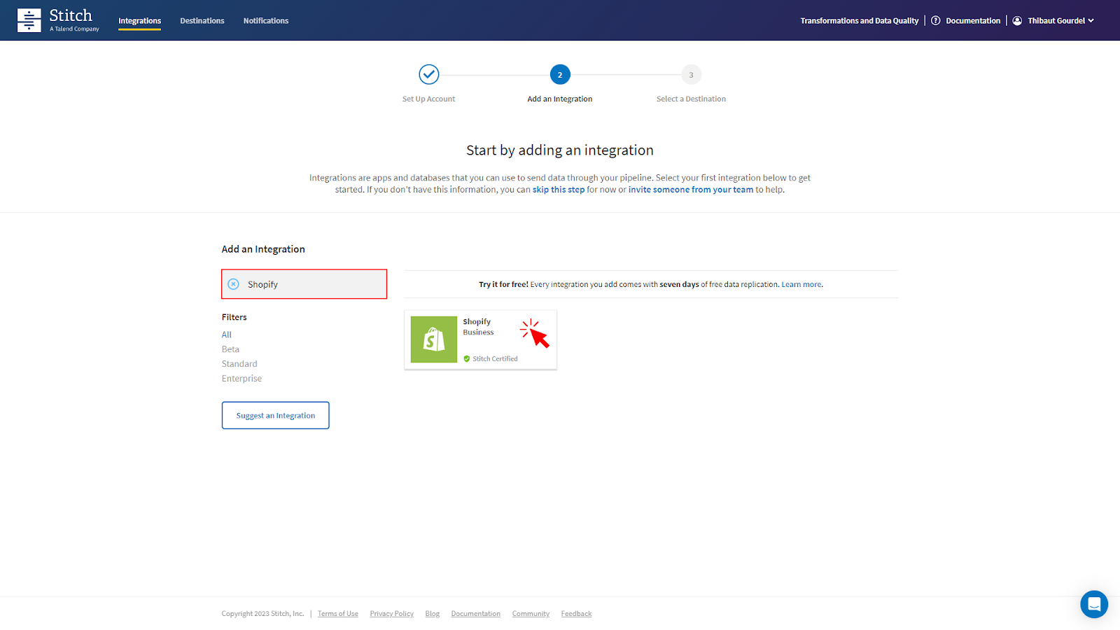 This first step is meant to show the easy and quick Stitch onboarding process. You will learn how to create an integration in a few minutes by setting up a source (Shopify) and a destination (Postgres).