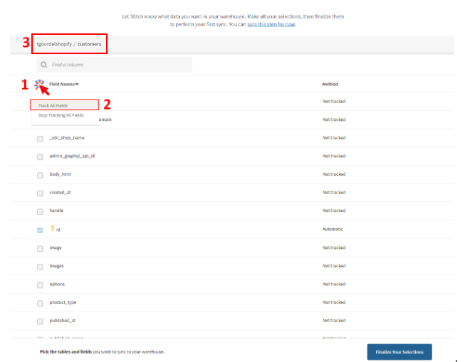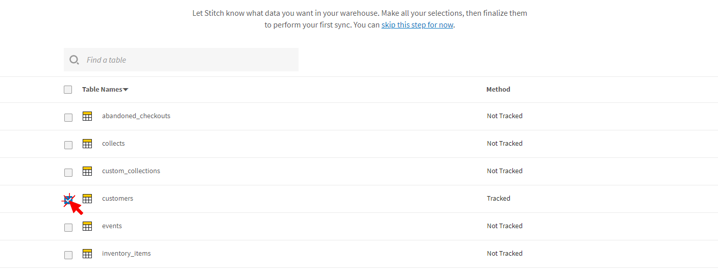 Then, repeat the same process for orders and products. Note that when you sync a table, by default all columns will also be set to sync.