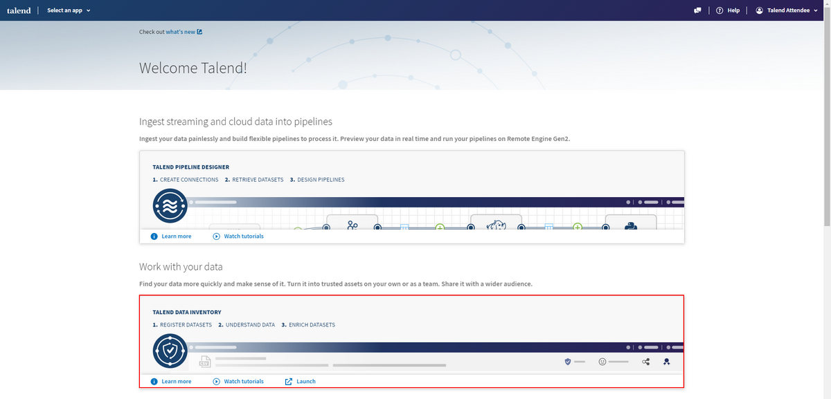 Then open Talend Data Inventory among the list of applications, by clicking on "Launch":